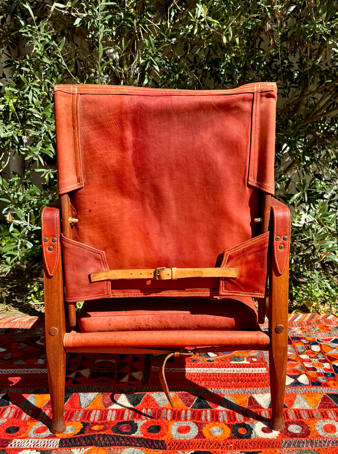 Structure en frêne, assise, accoudoirs et dossier en cuir, visserie en laiton.