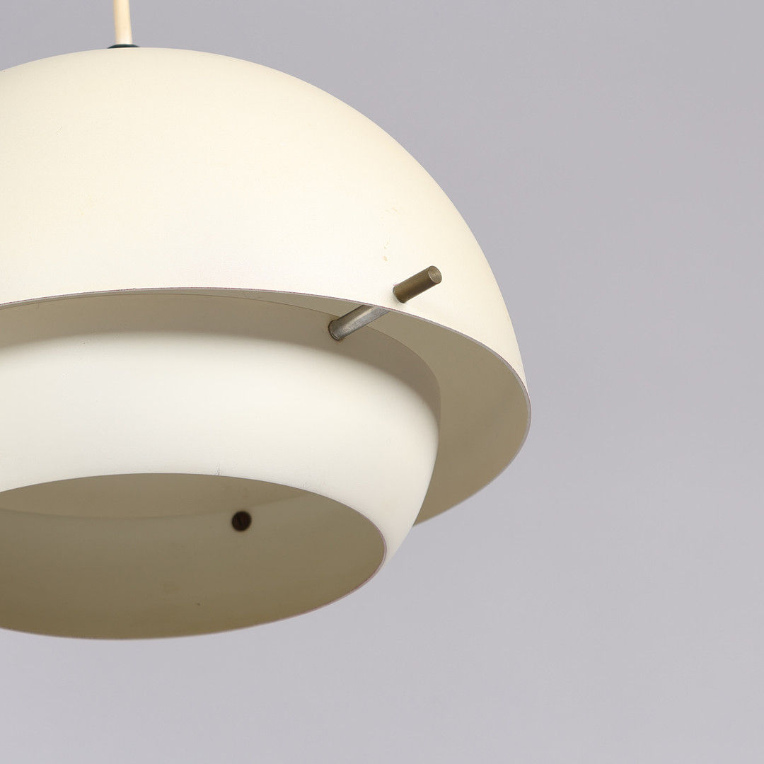 Paire de suspensions hémisphériques, en métal laqué blanc, avec abat-jour intérieur.
